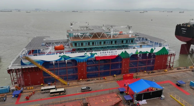 中國船舶集團(tuán)旗下廣船國際建造的半潛式深遠(yuǎn)海智能養(yǎng)殖旅游平臺(tái)“普盛海洋牧場(chǎng)6號(hào)”命名交付。