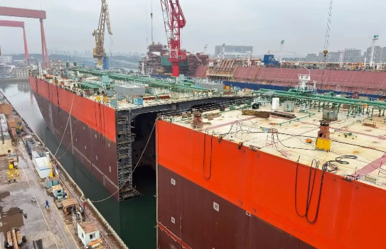10月10日,大連造船為CIDO SHIPPING (H.K.) CO., LTD建造的30萬(wàn)噸VLCC130號(hào)船順利完成艏半段出塢及兩大段對(duì)接節(jié)點(diǎn)。此次作業(yè)較年度計(jì)劃提前20天完成,有效壓縮了施工周期,顯著提升了作業(yè)效率。
