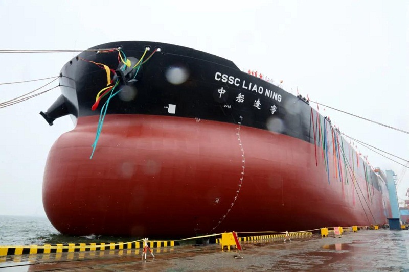 ????今天,中國船舶集團旗下大船集團為中船貿(mào)易所屬租賃公司建造的30.8萬噸超大型原油船“中船遼寧”號命名交付?!爸写|寧”號是大船集團自主開發(fā)的新一代極具市場競爭力的品牌船型。該船總長332.95米,型寬60米,最大載重量30.8萬噸,屬于無限航區(qū)船型,續(xù)航里程超過25000海里,在設(shè)計吃水20.5米可正常裝載200萬桶原油通過馬六甲海峽。