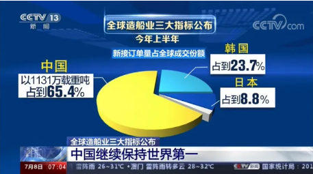 全球權(quán)威航運造船機構(gòu)公布的最新數(shù)據(jù)顯示,今年上半年,全球造船業(yè)三大指標,中國再次領(lǐng)先,繼續(xù)保持世界第一的紀錄。