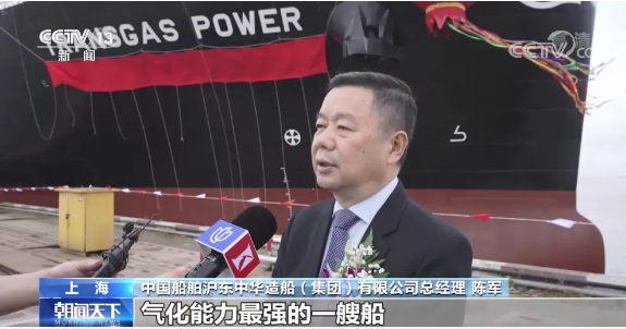 滬東中華總經(jīng)理陳軍:這艘船是我們中國(guó)第一次新建的FSRU(再氣化)項(xiàng)目,同時(shí)也是目前單個(gè)FSRU(再氣化)裝置方面氣化能力最強(qiáng)的一艘船。