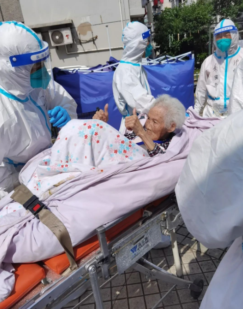 “我們是穿著防護服進去的,突然看到這么多‘大白’,老人們不免有些緊張,問的最多的就是‘去哪里’。隨著我們一趟趟幫著老人下樓、上車,老人們開始逐漸信任我們。因為轉(zhuǎn)運的部分老人中存在核酸異常的情況,有些老人還會時不時關照我們要注意防護。幫他們送上救護車時,老人還和我們連聲表示感謝?!碧镅┟髡f道。