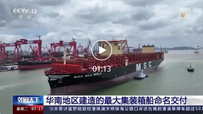 7月24日,由中國船舶集團旗下廣船國際聯(lián)合中船貿(mào)易建造的16000TEU集裝箱船1號船命名交付,中央電視臺《朝聞天下》進行了報道。