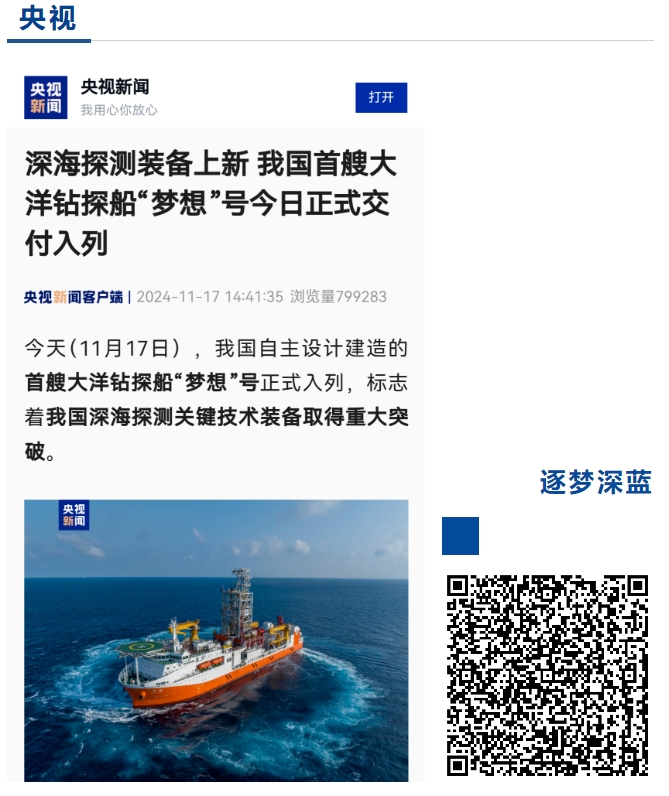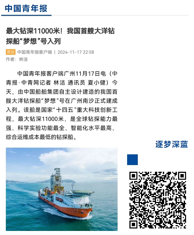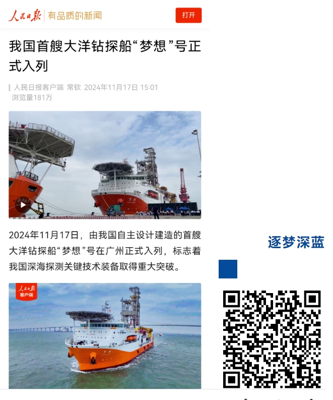 11月17日,中國船舶集團(tuán)自主設(shè)計建造的我國首艘大洋鉆探船“夢想”號在廣州南沙交付入列,人民日報、新華社、央視等媒體的記者來到交付現(xiàn)場進(jìn)行報道 。
