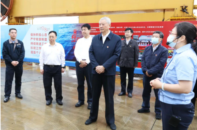 調(diào)研期間,中央主題教育第42指導(dǎo)組組長王壽君、副組長房德權(quán),成員程建宏、項(xiàng)紫君、仇國歡一行深入黃埔文沖科研生產(chǎn)現(xiàn)場,登上在建重點(diǎn)船舶,詳細(xì)了解重點(diǎn)項(xiàng)目產(chǎn)品性能、技術(shù)優(yōu)勢,聽取了關(guān)于設(shè)計(jì)研發(fā)、創(chuàng)新改進(jìn)、生產(chǎn)建造過程的介紹。指導(dǎo)組一行還走進(jìn)黃埔文沖廠史館,了解黃埔文沖170多年的發(fā)展歷程。