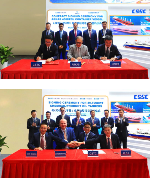 此次展會(huì)上,集團(tuán)公司有關(guān)成員單位負(fù)責(zé)人率隊(duì)赴展會(huì)開展重點(diǎn)船海項(xiàng)目經(jīng)營(yíng)洽談并拜訪當(dāng)?shù)睾椭苓厙?guó)家主要客戶。集團(tuán)公司以“高端綠色、領(lǐng)跑未來(lái)”為參展主題,展臺(tái)設(shè)置了集團(tuán)總體區(qū)、高端綠色船舶區(qū)、先進(jìn)動(dòng)力配套區(qū)共3個(gè)展示區(qū)域,重點(diǎn)展示了首艘國(guó)產(chǎn)大型郵輪、27.1萬(wàn)立方米超大型LNG(液化天然氣)運(yùn)輸船、10800車LNG雙燃料汽車運(yùn)輸船、全球首艘LNG雙燃料VLCC(超大型油船)、21萬(wàn)噸氨燃料散貨船、9.3萬(wàn)立方米超大型全冷式液化氣船等一系列技術(shù)含量高、全球競(jìng)爭(zhēng)力強(qiáng)的高端綠色船型,以及CPGC-WinGD 10X92DF-M甲醇雙燃料發(fā)動(dòng)機(jī)、船用供氣系統(tǒng)、船用碳捕捉系統(tǒng)、船舶新能源動(dòng)力系統(tǒng)解決方案等滿足IMO(國(guó)際海事組織)當(dāng)前和未來(lái)排放要求的先進(jìn)動(dòng)力配套設(shè)備,充分彰顯了中國(guó)船舶集團(tuán)的國(guó)際化品牌形象及引領(lǐng)國(guó)際船舶市場(chǎng)創(chuàng)新發(fā)展的澎湃動(dòng)力。