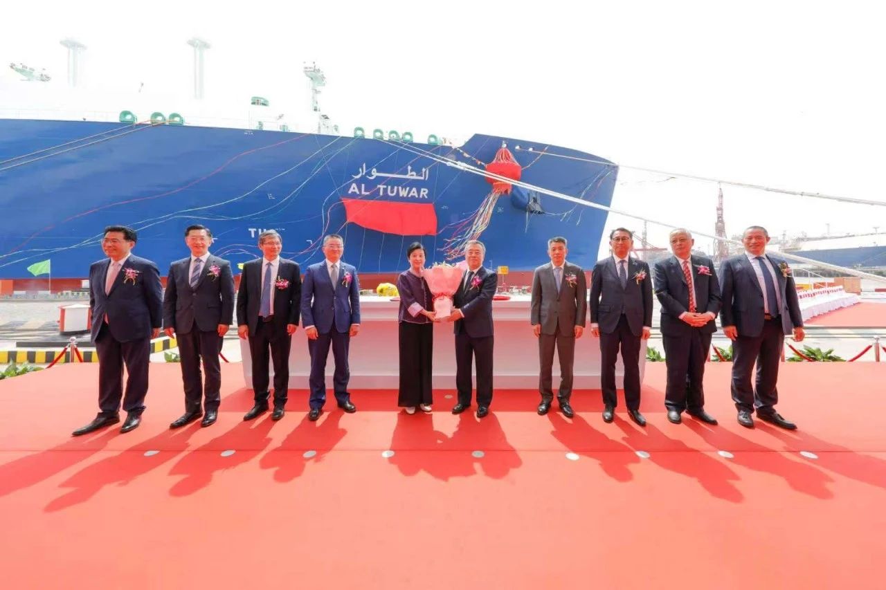 4月17日,中國(guó)船舶集團(tuán)有限公司黨組副書記、董事、總經(jīng)理王國(guó)強(qiáng)出席卡塔爾能源項(xiàng)目17.4萬(wàn)立方米LNG運(yùn)輸船“AL TUWAR(阿爾圖瓦爾)”號(hào)命名儀式。招商局集團(tuán)黨委副書記、董事、總經(jīng)理石岱出席命名儀式并為新船命名致頌詞。中船集團(tuán)黨組成員、副總經(jīng)理胡賢甫出席儀式并致辭,招商局集團(tuán)黨委委員、副總經(jīng)理馮波鳴,中遠(yuǎn)海運(yùn)集團(tuán)領(lǐng)導(dǎo)馮波,日本郵船副社長(zhǎng)河野晃等嘉賓出席命名儀式。