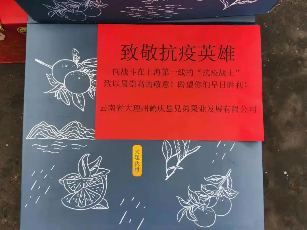 3月22日,一輛滿載沃柑、土雞、土豆、牛奶等價值近45萬元的云南省鶴慶縣生態(tài)農(nóng)產(chǎn)品的貨車,帶著28萬鶴慶人民的深情厚誼與衷心祝福緊急馳援中國船舶集團(tuán)旗下江南造船和上海市浦東新區(qū)新場鎮(zhèn)、惠南鎮(zhèn)。