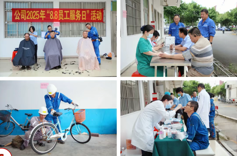 8月8日,中船澄西舉辦勞務(wù)工服務(wù)日系列活動(dòng),為勞務(wù)工送上冰鎮(zhèn)綠豆湯、西瓜及夏令清涼用品,精心準(zhǔn)備了理發(fā)、磨刀、小家電修理等便民服務(wù)以及健康體檢、法律咨詢。